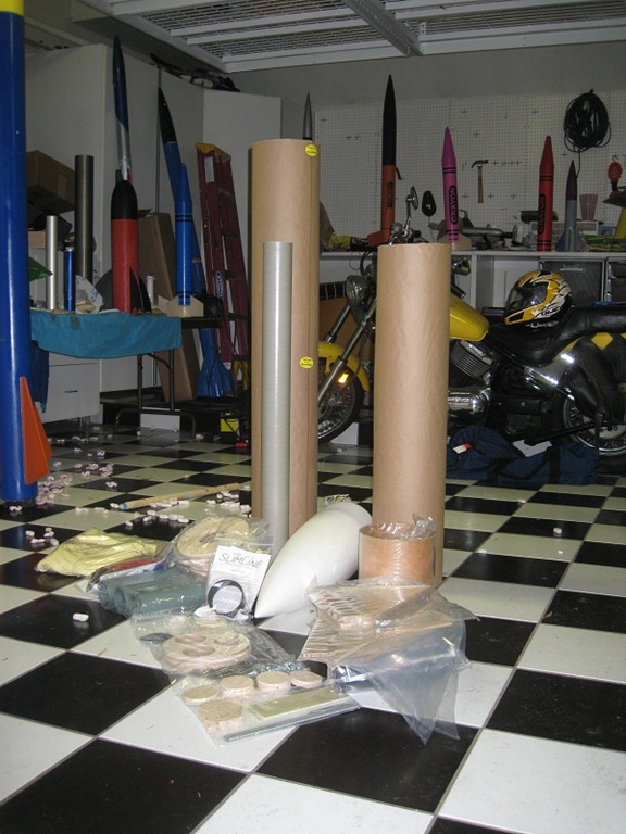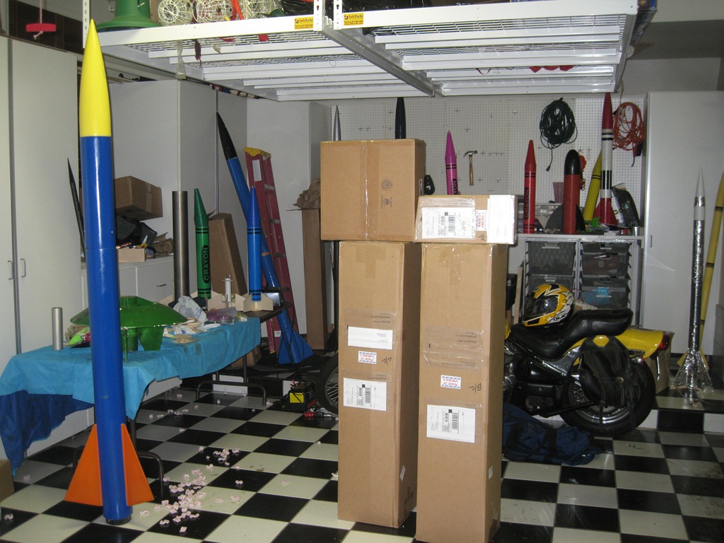 These are the boxes containing the Giant Leap Nuclear Sledgehammer which will be the basis of my level 3 rocket. A couple of interesting things to note. First, my wife has actually let me take over an entire bay of our garage to turn into a mad scientist laboratory – if you knew my wife, you would know that this is really proof of her love.