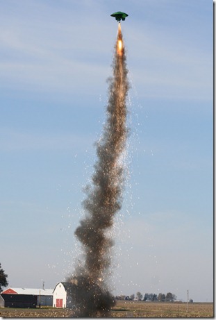 When the motor lit, it sounded like an explosion. I had a 210fps video camera going, and only got 1 frame of the rocket leaving the pad, which means it was probably going faster than 1200 MPH by my calculations.