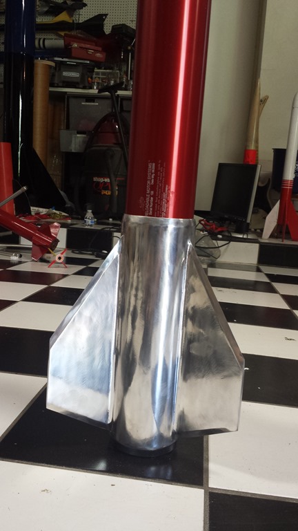 enough to appreciate the difference. I guess the one tool in this area that is not found in your average garage is a TIG welder. There are some areas in rocketry in which there is no better alternative then metal, in my case, aluminum. Think motor cases, push rods, even fins. This is an alternate view of my 99 mm aluminum tig-welded fincan that fits perfectly over a 98 mm motor case, which I will be using as the booster section of a minimum diameter sounding rocket I am working on.